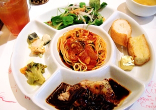 イタリアンが食べたくなったら、『キャンティセテ』がおススメです! ランチ時は、早めに行くべし!! セレブママ(?)らしき女子達でいつもにぎわっています(*^_^*) ここのランチでおススメなのが、ランチプレート☆ プレート+スープ+デザート+飲み物が付いて1000円という破格の安さ♪ サラダにかかっているドレッシングがめちゃウマです!! |